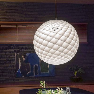 De Louis Poulsen Patera hanglamp is een stralende bol die is opgebouwd uit kleine diamantvormige cellen van gesneden PVC