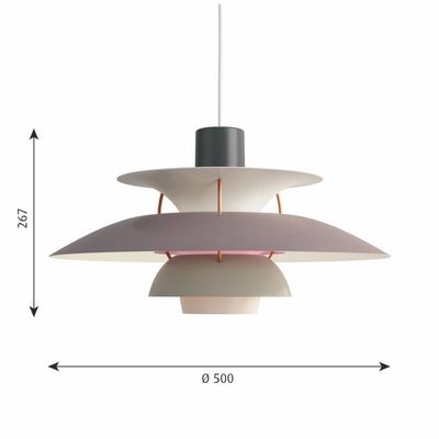 Omdat de diameter van het bovenste scherm 50 cm is, wordt deze lamp een PH5 genoemd.