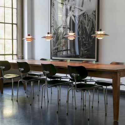 Deze PH 5 Mini hanglamp is ontworpen om zowel laag boven een tafel, of hoog als solo lamp, of met meerdere exemplaren bij elkaar te hangen.